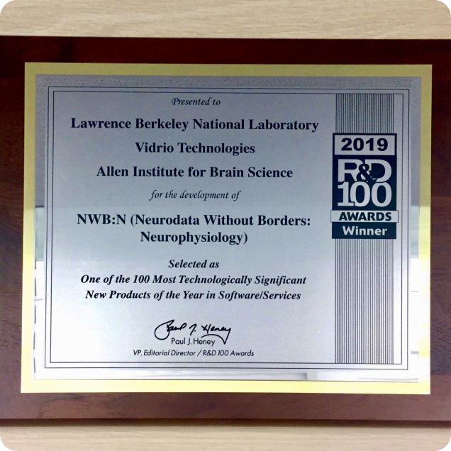 Oliver Rübel, Andrew Tritt, Ryan Ly, Benjamin K. Dichter, Satrajit Ghosh, Lawrence Niu, Pamela Baker, Ivan Soltesz, Lydia Ng, Karel Svoboda, Loren Frank, Kristofer E. Bouchard, The Neurodata Without Borders ecosystem for neurophysiological data science, Oct. 2022, eLife 11:e78362. https://doi.org/10.7554/eLife.78362 (bioRxiv preprint: https://doi.org/10.1101/2021.03.13.435173)